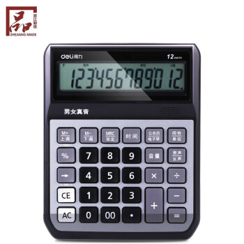 得力 deli 大屏12位语音计算器计算机 男女真声切换 电子琴功能可弹音乐 办公用品 灰黑