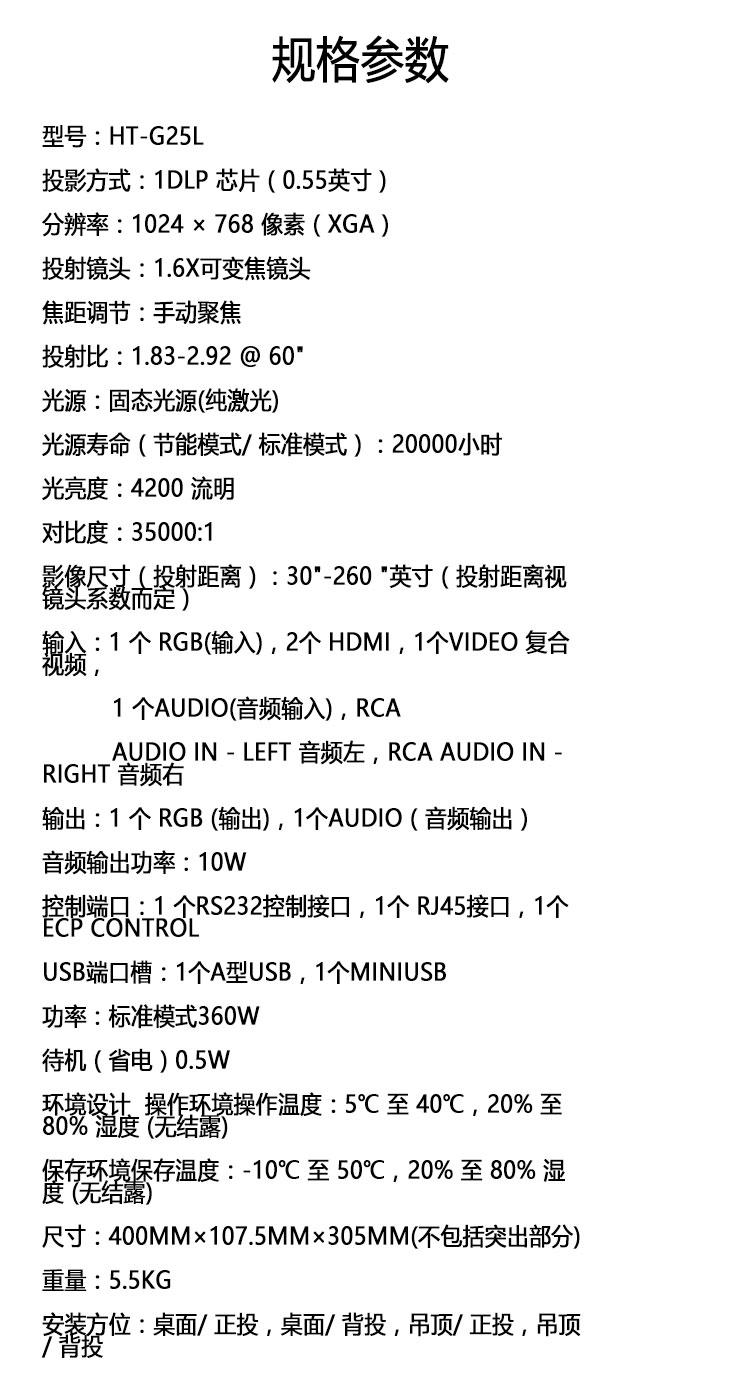 鸿合(HiteVision) 激光投影仪 商用 办公 超高清 激光工程投影机 HT-G26WU(5300流明 激光超高清) 官方标配+赠品安装配件