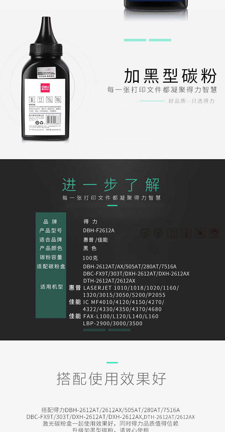 通用硒鼓、粉盒得力DBH-F2612A碳粉(黑色)