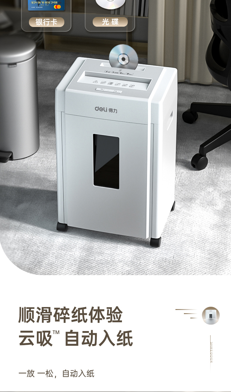 得力 deli 5级保密办公商用碎纸机(单次8张 20L 持续10分钟 可碎卡碎光盘)33040